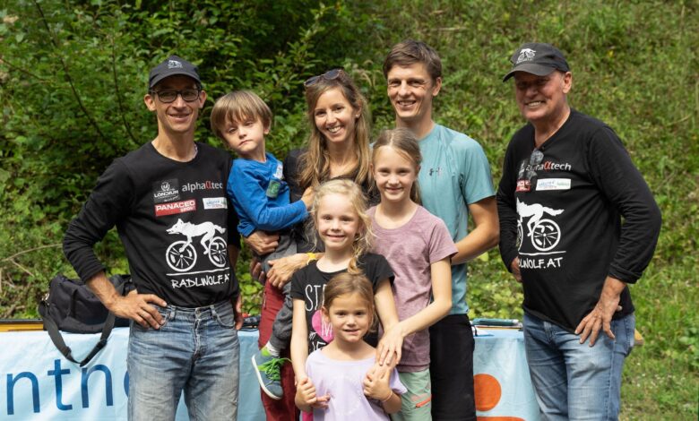 Auf ein Wiedersehen beim „9. Bewegung für den guten Zweck“ am Sonntag, 3. 9. 2023 in Kötschach freuen sich Radlwolf und Michi Kurz mit dem Mitarbeiterteam.