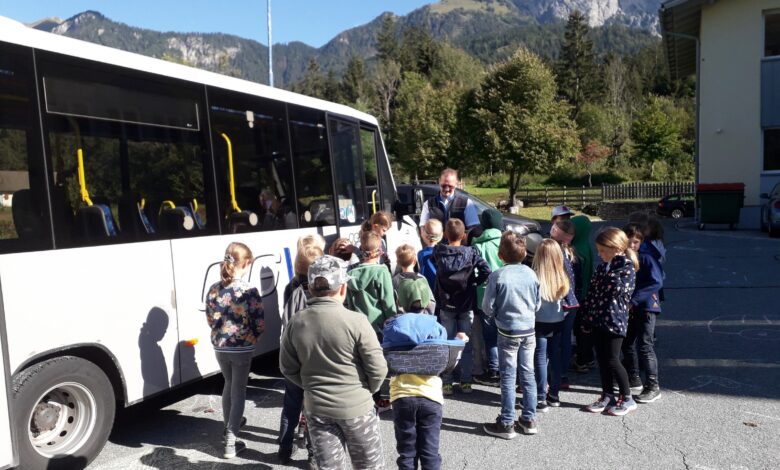 Anschließend gab es noch die Chance einen Linienbus des Mobilbüro Hermagor in der Busschule zu erleben. Der Buschauffeur stellt seinen Linienbus vor und die Kinder können praktische Einblicke gewinnen und eine Extrafahrt mit dem Bus unternehmen.